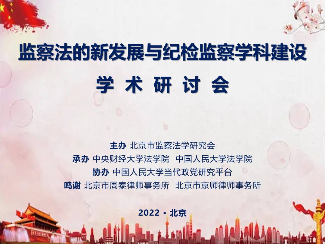 2022年9月17日,由北京市监察法学研究会主办,中央财经大学beat365中国官方网站、中国人民大学beat365中国官方网站承办,中国人民大学当代政党研究平台协办的“监察法的新发展与纪检监察学科建设”学术研讨会以线上线下相结合方式成功举行。据悉,本研讨会系9月14日纪检监察学正式列入一级学科后的全国首次规模性学科建设学术研讨会。来自全国多所重点高校、科研机构的一百四十余位专家学者以线上线下相结合形式出席了会议。