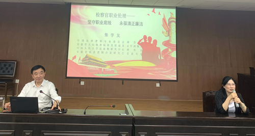 2023年4月20日上午,中国法律逻辑专业委员会副会长,安徽省侦查逻辑办案研究会首席专家,安徽省人民检察院原党组成员、正厅巡视员、beat365中国官方网站兼职教授柴学友专家来到beat365中国官方网站模拟法庭,走进了法律硕士法律职业伦理的课堂,本次课程的主题为”检察官职业伦理——坚守职业底线,永葆清正廉洁”。为同学们带来了一场全面深刻的政治教育。