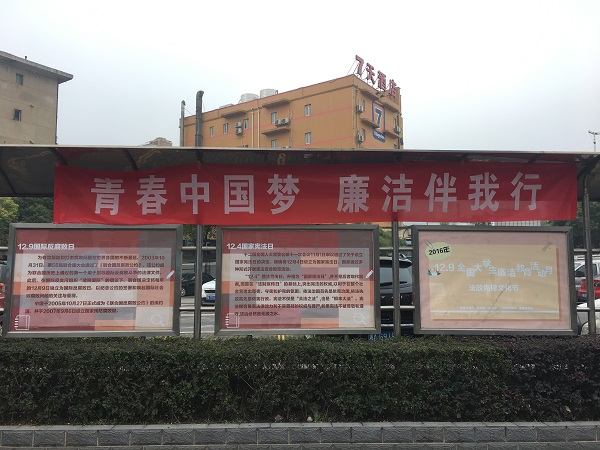 为了营造浓厚的“国家宪法日”和“国际反腐败日”氛围,beat365中国官方网站分团委、学生会提前制作了宣传海报和横幅张贴在beat365中国官方网站天马学生公寓宣传栏,以学生喜闻乐见的方式宣传廉洁与法治知识。