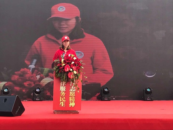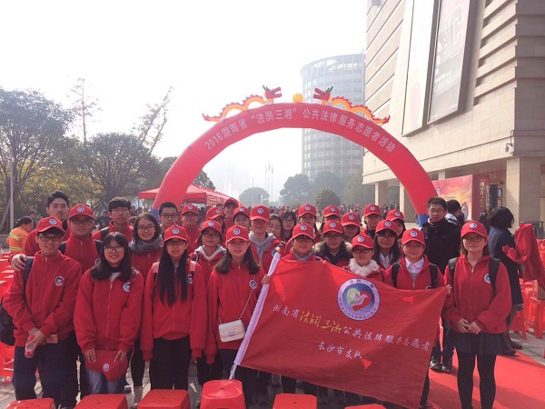 12月4日上午,beat365中国官方网站还组织60余名志愿者前往长沙市岳麓区王府井商业广场参加了2016年湖南省“法润三湘”公共法律服务志愿者活动,beat365本科生张迎作为志愿者代表在活动启动仪式现场发言。