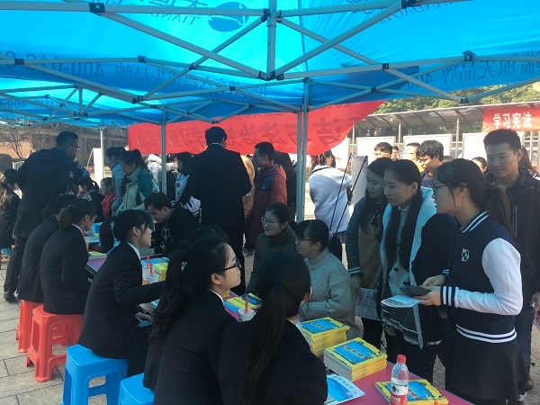 上午9点半,beat365中国官方网站青年志愿者团、湖湘廉风学社、法律青年社等学生组织联手beat365中国官方网站2016级检察理论与实务研究生班的13名检察官,在天马学生公寓设置普法宣传点,派发宣传单、学习书籍和纪念书签,向全校学生普及“12.4国家宪法日”、“法律小常识”和“12.9国际反腐败日”方面的知识。长沙市人民检察院13名检察官坐镇普法宣传点为同学们答疑解惑,前来咨询的同学络绎不绝,现场气氛热烈。“求职过程中如何辨别合同中的有效和无效条款?物品在寝室被盗学校是否应该承担责任?报名培训班因故不能上课学生是否有权利要求培训机构退款?在校外兼职遭遇黑心老板拖欠工资该如何解决?…… ”同学们针对在日常生活中遇到的法律问题向检察官们咨询,部分法学专业的学生就司法考试、学习方法、职业发展等与检察官交流。“法学专业是一门实践性特别强的专业,必须要将把课堂上学到的理论知识运用到实践中去。”检察官们建议本科生在学校要认真学习书本知识,打牢专业基础,同时多关注社会的热点问题,并尝试用法律思维去理性看待。同学们还与检察官们一起探讨了聂树斌案、夏俊峰案、贾敬龙案以及罗尔求捐等热点案件和问题。